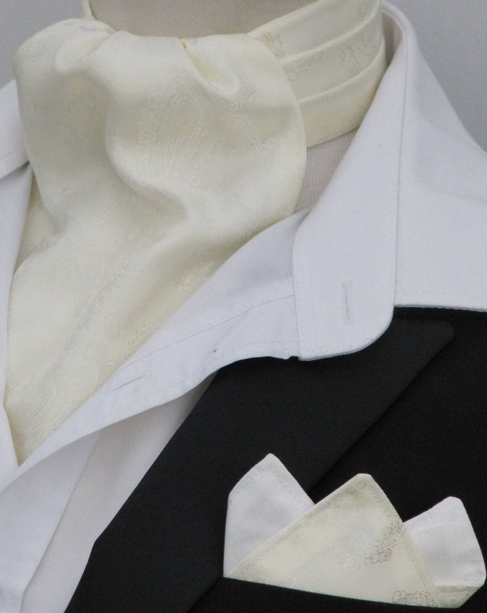 Mens Buttermilk Cream Paisley Shot Satin Ascot Cravat & Pocket Square