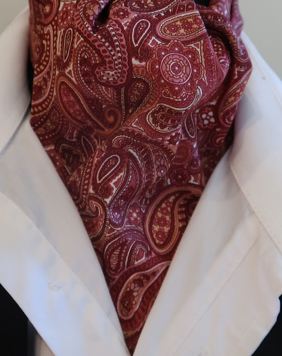 Mens Burgundy, Dusty Pink and Cream Paisley Cotton Ascot Cravat / Square